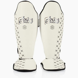 Ochraniacze piszczele Fairtex Zawody SP5 z osłoną na stopy Biały