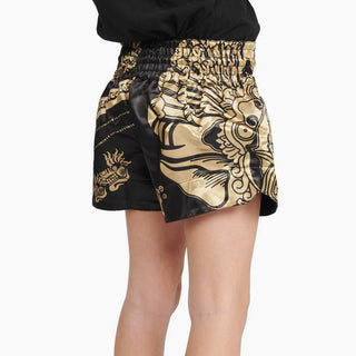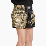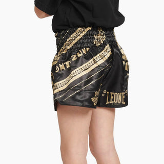 Szorty Leone Montezuma ABJ09 to spodenki dla dzieci i młodzieży. Zaprojektowane do sportów walki, wykonane są z wytrzymałej i komfortowej tkaniny. W pasie znajduje się wygodny elastyczny pasek, który dopasowuje się do kształtu ciała. Charakteryzują się eleganckim połączeniem czerni i złota, a te szorty wyróżniają się grafikami nawiązującymi do azteckich dekoracji.