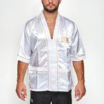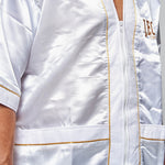 Fartuch mistrza Leone Premium AB262 jest częścią linii Premium, zaprojektowanej, aby nadać meczom odrobinę stylu i nutkę elegancji. Miękki i lekki, fartuch wykonany jest z satyny, komfortowy i przyjemny w dotyku. Z krótkimi rękawami, przednim zamkiem i bocznymi kieszeniami, jest idealny dla sekundantów, którzy idą do narożnika swoich zawodników. logo haftowany i złote profile wzbogacają design produktu. Wyposażony w logo Leone na plecach, Fartuch mistrza Leone Premium jest dostępny w dwóch kolorach: czarnym i białym.